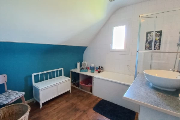 vous invite à venir découvrir cette jolie néo Bretonne de 114 m2 environ, lumineuse à proximité des services ( centre médical, pharmacie, vétérinaire, coiffeur, écoles, collèges, commerces, restaurants... ) à pieds, proche du lac de Guerlédan pour des promenades en forêts...