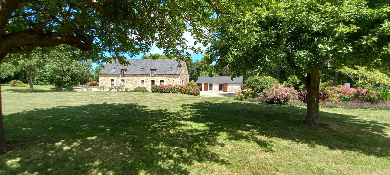 Édifiée sur un terrain paysagé d'environ 11 700 m2, agrémenté d'un verger et d'un étang poissonneux, cette propriété se compose d'une grande maison divisée en deux logements indépendants. Une configuration idéale pour accueillir famille et amis, ou envisager une activité de gîtes en toute simplicité. Deux logements indépendants, au sein d'une même propriété