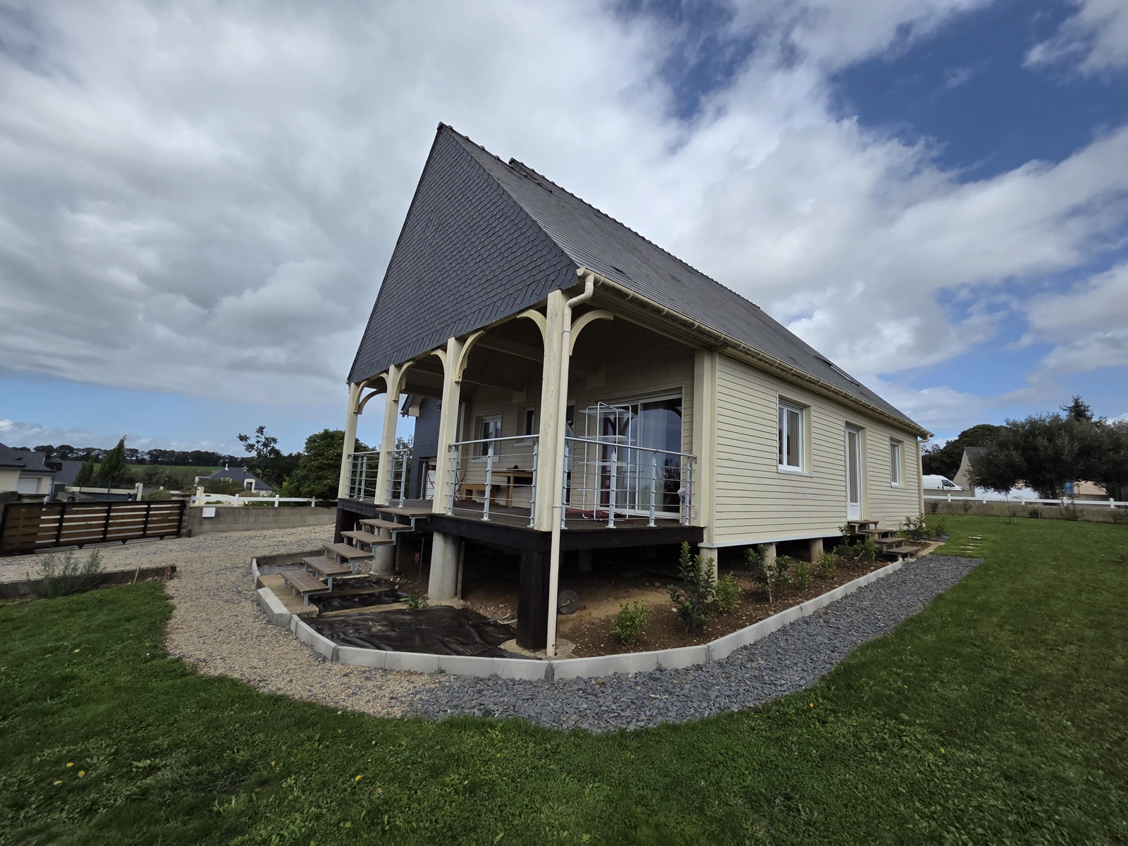 Votre conseillère en immobilier Noovimo Annabelle PINSIVY 06.71.22.09.69 apinsivy@noovimo.fr Découvrez en exclusivité cette maison (2009) en bois sur pilotis, nichée au coeur d'un charmant lotissement. Laissez-vous séduire par son charme et son originalité, sublimés par une belle hauteur sous plafond qui baigne chaque pièce de lumière naturelle. En franchissant la porte d'entrée, vous serez accueilli par un espace ouvert et convivial qui donne sur le séjour et le salon (35 m2) disposant d'une jolie cuisine aménagée et équipée (2025). La maison dispose de toutes les commodités modernes, notamment une connexion à l'assainissement collectif. Cette maison comprend également au rez-de-chaussée une belle chambre, un bureau, un WC avec lave-mains, une salle de bain équipée d'une baignoire et d'une douche, une buanderie ainsi qu'une arrière-cuisine fonctionnelle. A l'étage : un pallier, ouvert sur un dégagement, deux chambres, une salle d'eau avec douche à l'italienne et wc (2025) Un grand garage vous permettra de stationner votre véhicule et de bénéficier d'un espace de rangement supplémentaire. Le jardin est paysagé et entièrement cloturé. Ne manquez pas cette opportunité unique d'acquérir une maison en bois lumineuse, bien agencée. Venez la visiter et laissez-vous charmer par son atmosphère chaleureuse et accueillante. Nos honoraires sont consultables sur www.noovimo.fr Prix de vente 216 000 euros net vendeur, honoraires NOOVIMO 8 850 euros charge acquéreur Prix d'acquisition 224 850 euros honoraires NOOVIMO inclus 'Les informations sur les risques auxquels ce bien est exposé sont disponibles sur le site Géorisques: http:/georisques.gouv.fr' Pour visiter et vous accompagner dans votre projet contactez Annabelle Pinsivy votre agent commercial NOOVIMO 06.71.22.09.69 apinsivy@noovimo.fr inscrit au RSAC de LORIENT no 897437 000 annonce rédigée et publiée par un agent Mandataire. 1 - Annonce rédigée et publiée par un Agent Mandataire -